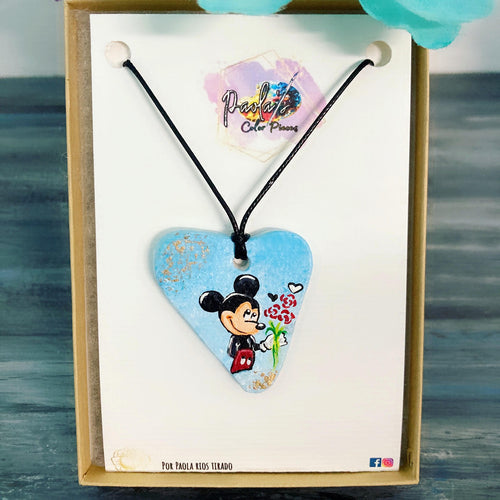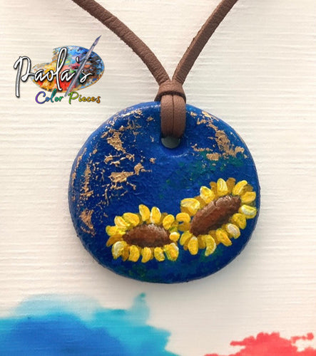 Navy blue circle sunflower handpainted necklace "Amarillo Girasol"