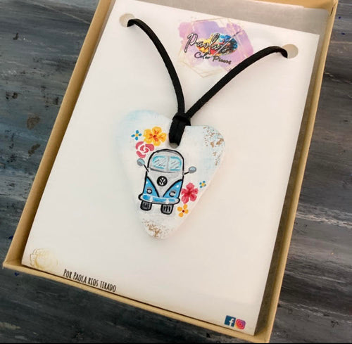 Turtle heart Puerto Rico handpainted necklace "Coleccion Boricua"