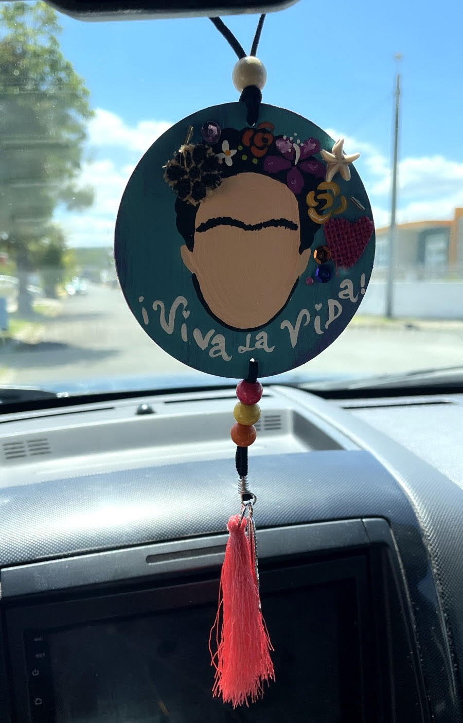 Frida Kahlo turquoise car charm.